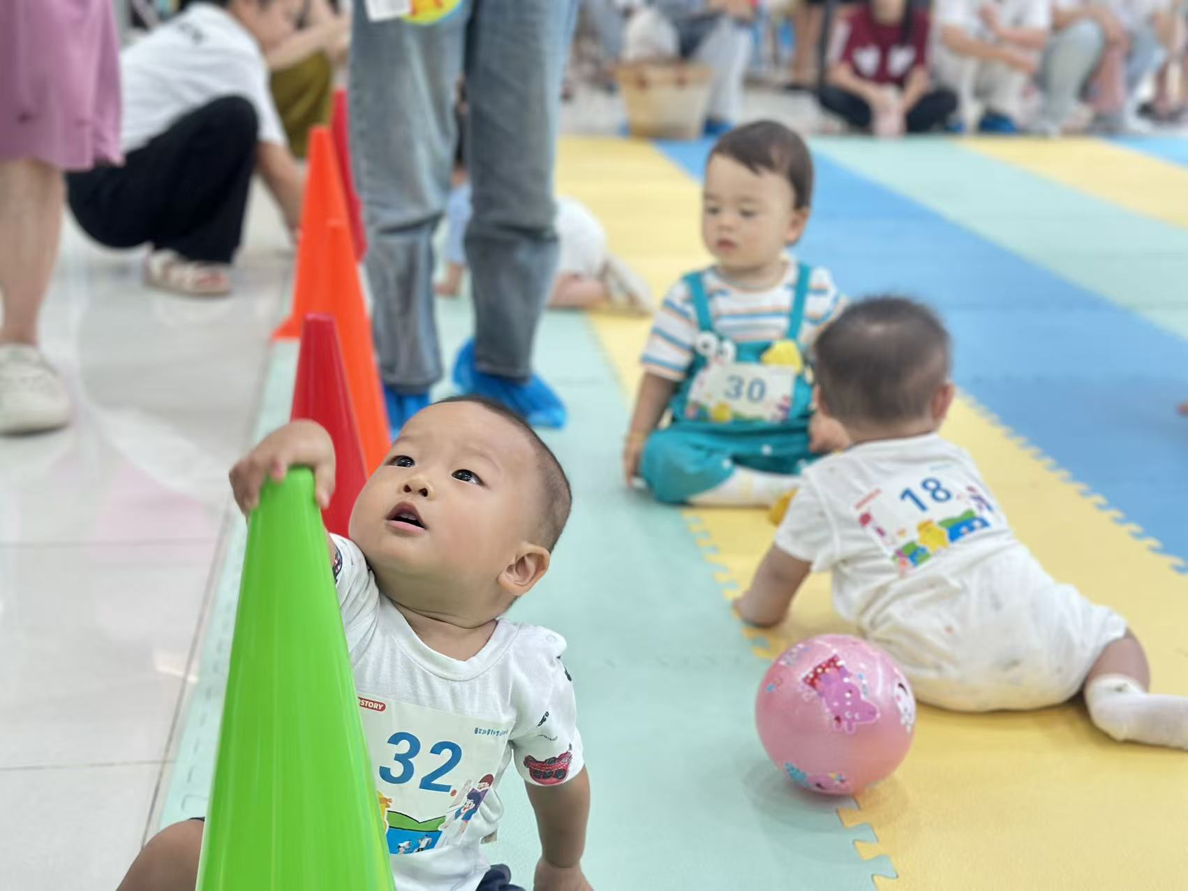 在抬头比赛中,小朋友们展现出良好的专注力和坚持性。家长们在一旁细心照看,并不时给予鼓励。随后的爬爬赛更是充满趣味,孩子们稚拙而认真的表现引得现场笑声不断。下午进行的球球接力赛中,小朋友们在场上来回奔跑,在家长的协助下完成各项挑战,展现出良好的运动精神。